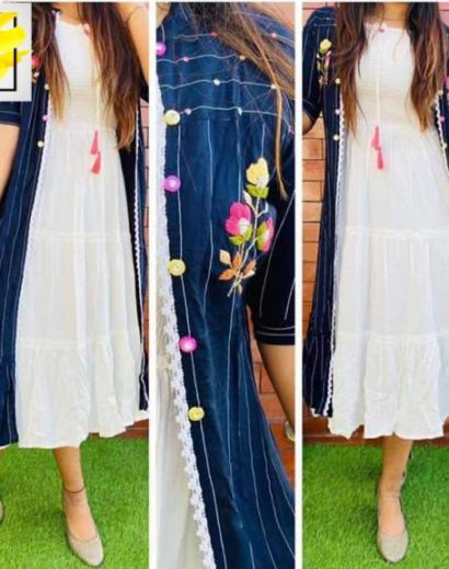 This dress by Fashion Basket is a must-have in your ethnic wear collection. Style it with a pair of heels and minimal accessories to look stunning.Trendy and style with comfort. Linen cotton fabric cap top with comfy Plazo pant. It has very smart jacket to compliant for look so smart.